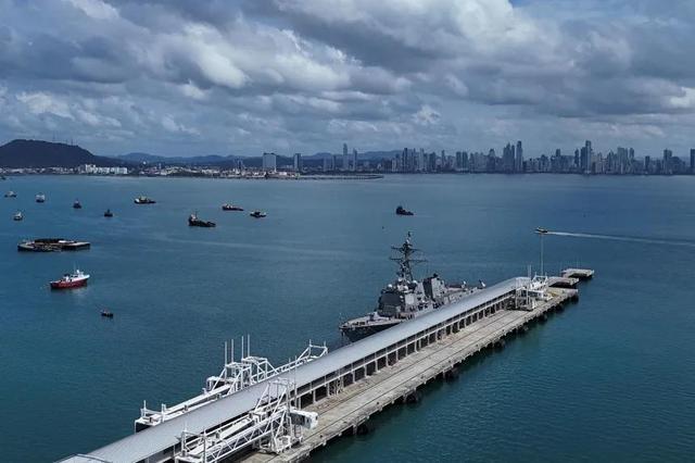 (美军导弹驱逐舰“桑普森”号抵达巴拿马运河入口处)