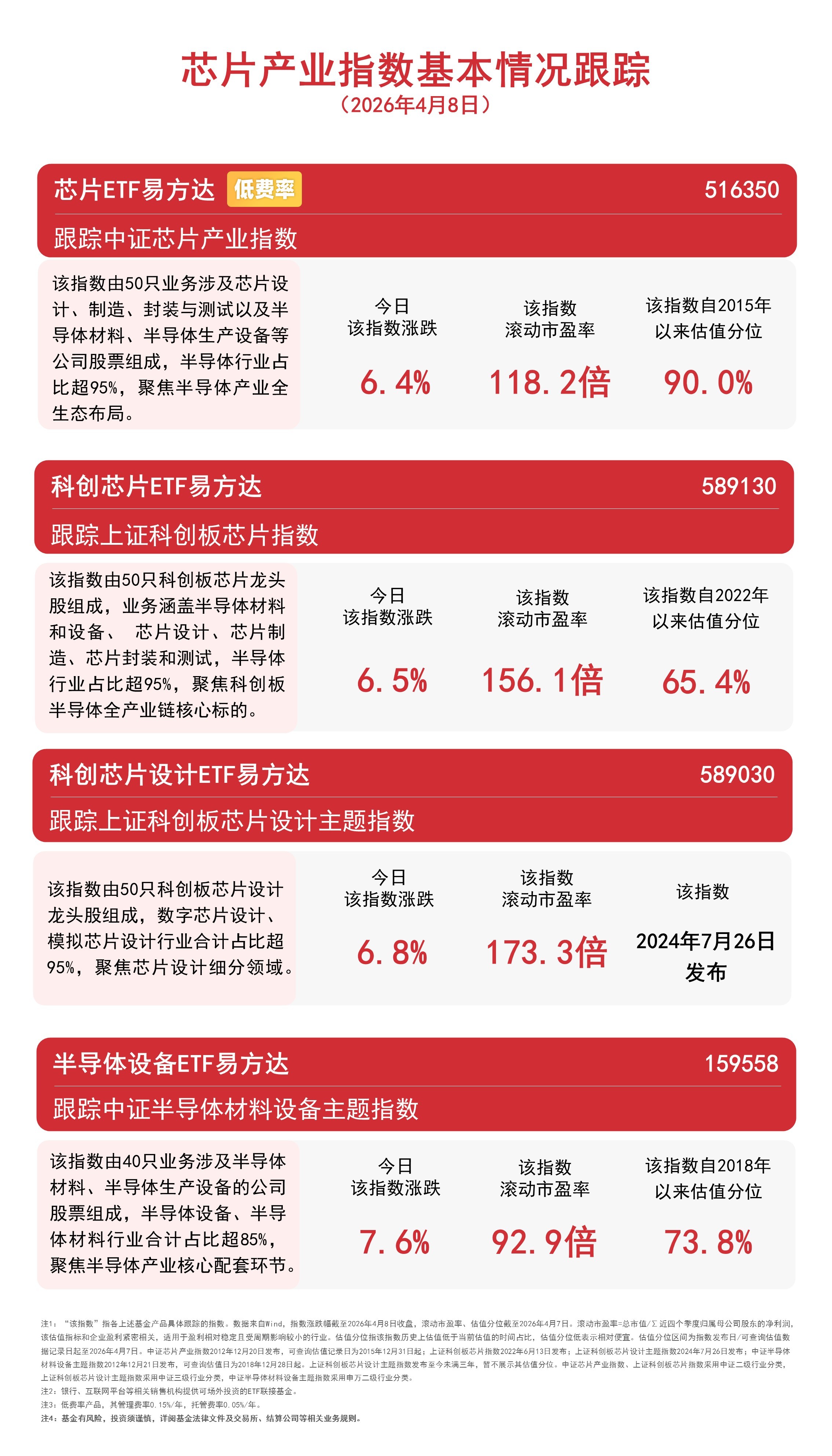 截至收盘,中证半导体材料设备主题指数上涨7.6%,上证科创板芯片设计主题指数上涨6.8%,上证科创板芯片指数上涨6.5%,中证芯片产业指数上涨6.4%。