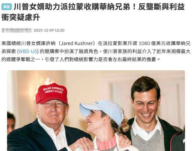 不论派拉蒙掌舵的人,和特朗普家族关系有多好,那也都是私交,但引入了特朗普女婿作为股东,那局势就不一样了。